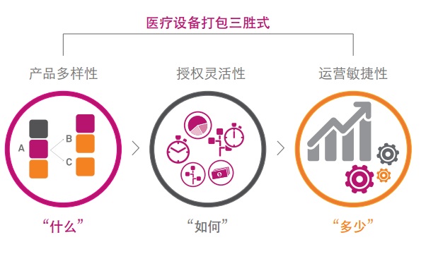 但是,提出這些問題只是成功了一半。一旦問題得到了解答,醫(yī)療設(shè)備供應(yīng)商需要準(zhǔn)備好合適的工具來做出行動(dòng)。如果某個(gè)醫(yī)療機(jī)構(gòu)只想要功能集合中的一部分,供應(yīng)商需要能夠以較低的價(jià)格提供基本捆綁包。例如,如果某醫(yī)院或診所無法負(fù)擔(dān)一次性購(gòu)買整套醫(yī)療設(shè)備的費(fèi)用,供應(yīng)商需發(fā)能夠提供訂閱或者按使用付費(fèi)授權(quán)模式。采取行動(dòng)的能力需要產(chǎn)品的多樣性、授權(quán)模式的靈活性以及業(yè)務(wù)的敏捷性。