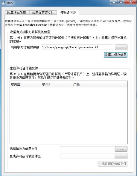 在B電腦上進(jìn)行如圖的操作,打開RUS,選擇接收電腦的相關(guān)信息存儲為receive.id,然后點擊“收集并保存信息”。就會看到已經(jīng)生成了receive.id這個文件。然后,把這個id 文件發(fā)給 A 電腦。