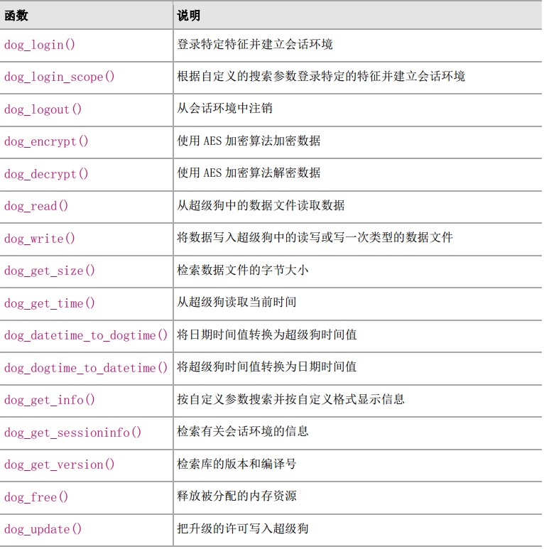 這些函數(shù)詳細(xì)使用說(shuō)明,請(qǐng)通過(guò)打“超級(jí)狗工具包“,在操作手冊(cè)和教程的SuperDog Developer'sGuide.pdf文件來(lái)查閱。