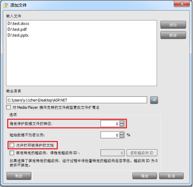 可以用指定的特征來保護(hù)您的 Office 文檔和 PDF 文檔,特征的缺省值是 0,被保護(hù)的Office 文檔和 PDF 文檔在打開時(shí)將在連接的超級(jí)狗中搜索為其指定的特征。