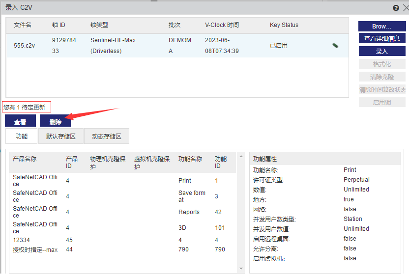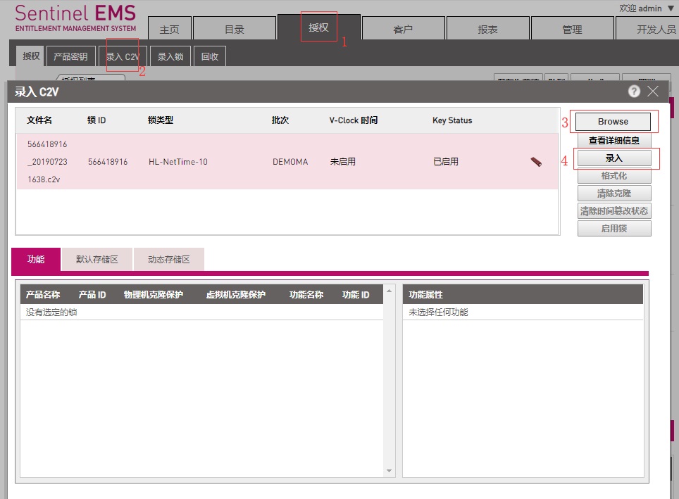 如果在升級(jí)時(shí)出現(xiàn)“必須首先安裝其它更新”這種報(bào)錯(cuò),請(qǐng)重新從客戶端取一個(gè)c2v文件,在開發(fā)商燒鎖工具EMS的授權(quán)界面錄入這個(gè)C2V