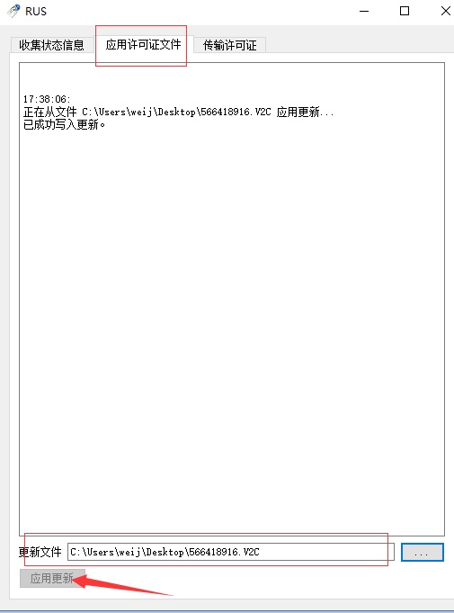 2、將些RUS開頭的文件發(fā)給客戶,插上需要遠(yuǎn)程升級(jí)的加密鎖,運(yùn)行此文件。