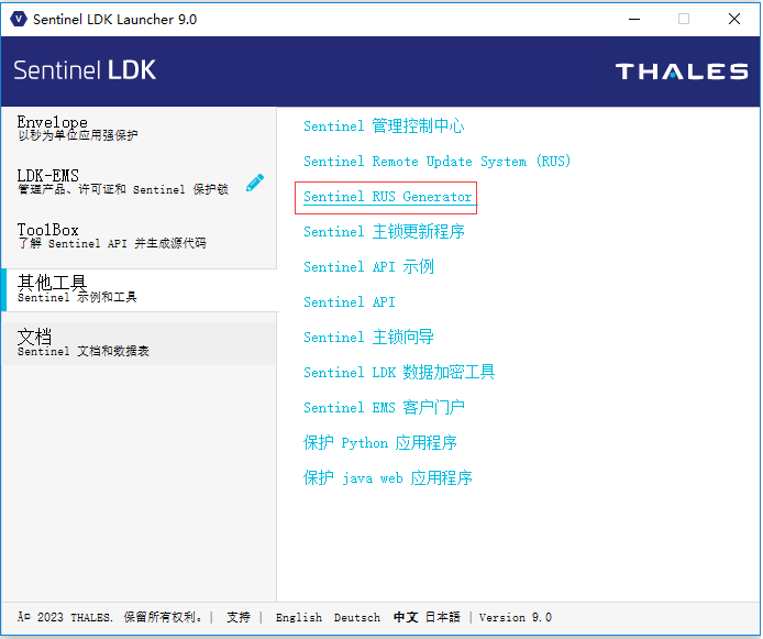 Sentinel LDK9.x及之后版本從主界面上其它工具進(jìn)入生成RUS工具