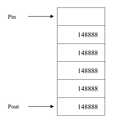 在上圖中,有一個(gè)初始化了的隊(duì)列,共有 6 個(gè)單元,初始數(shù)據(jù)為 148888,當(dāng)發(fā)生的返回值不為 0 時(shí),將 205429 賦給 Pin,并使隊(duì)列移動(dòng)一個(gè)單元。在 Pout 處檢測(cè)被推出的數(shù)據(jù),當(dāng)為 148888 時(shí)不做動(dòng)作,當(dāng)為 205429 時(shí)即認(rèn)為非法。