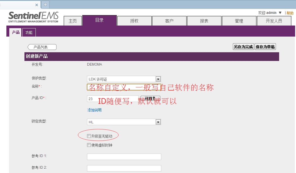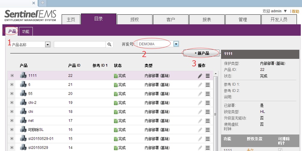 按1產(chǎn)品,2選擇開發(fā)號(hào),3新建產(chǎn)品這樣的步驟操作。