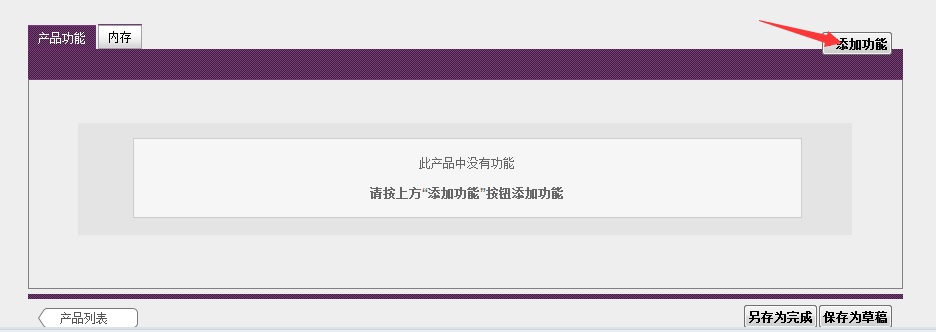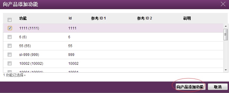 選上之前定義好的功能,并點(diǎn)擊“向產(chǎn)品添加功能”