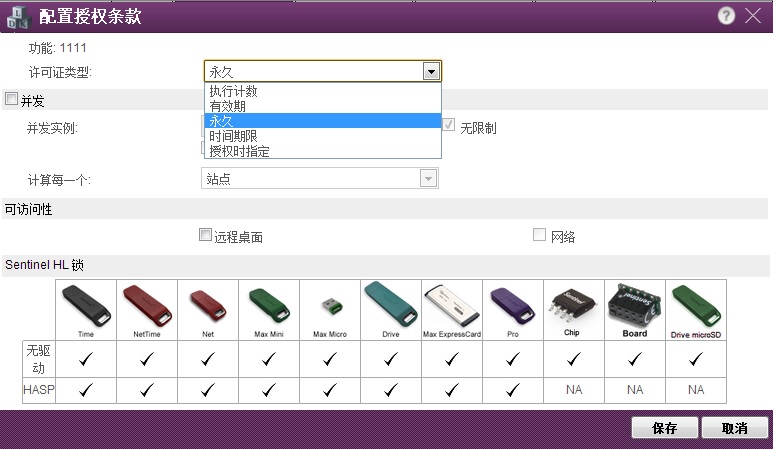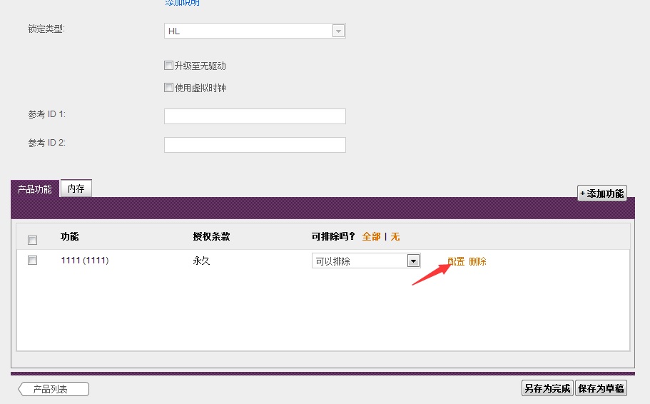 添加的功能默認(rèn)是永久,單機(jī)屬性,如果要設(shè)置軟件使用次數(shù)、時(shí)間、以及網(wǎng)絡(luò)并發(fā)用戶數(shù),就在添完功能后點(diǎn)“配置”。