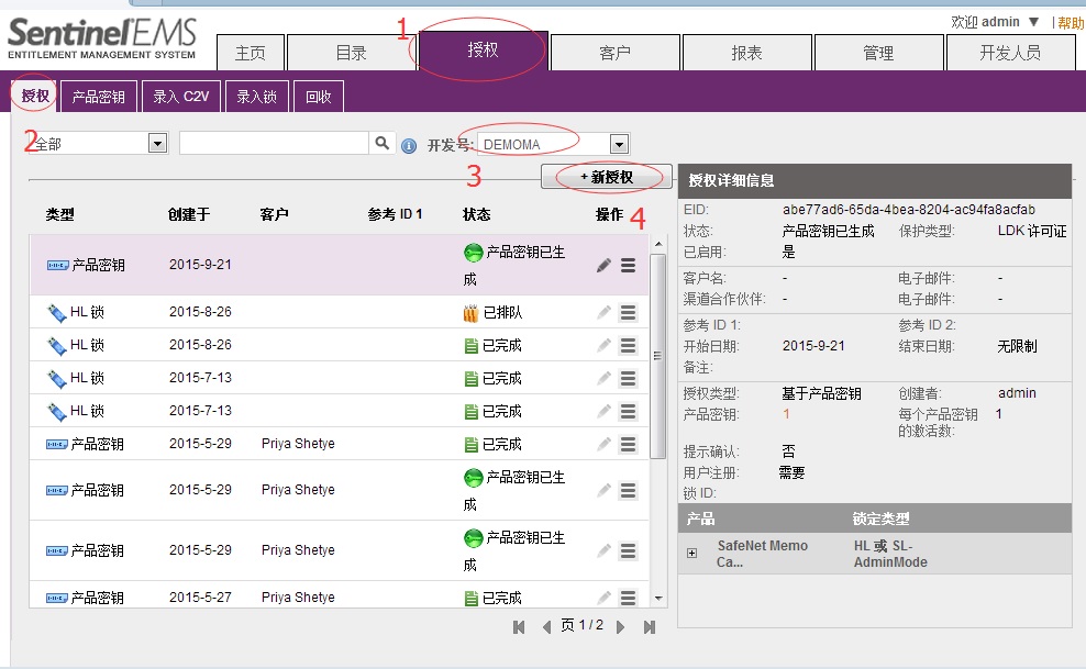 按圖中1、2、3、4步驟建一個(gè)新授權(quán)。