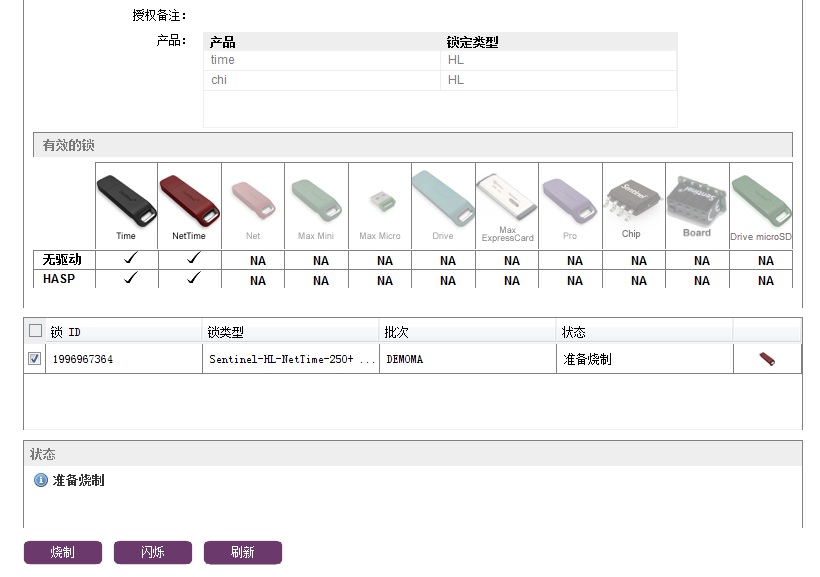 3、新建訂單、燒鎖-----設(shè)置好要燒鎖的數(shù)量、對(duì)應(yīng)的軟件產(chǎn)品,開始寫鎖。