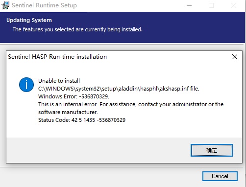 安裝圣天諾LDK驅(qū)動時報akshasp.ini錯誤
